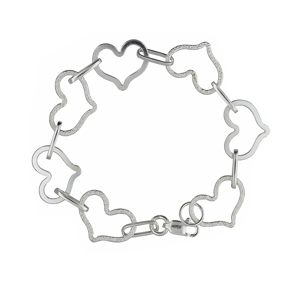 Brazalete de Plata modelo isabel 1, diseño de corazones en bi-terminado, brilloso y rugoso mate, 18cm de largo x 14mm de ancho. (las medidas son aproximadas).