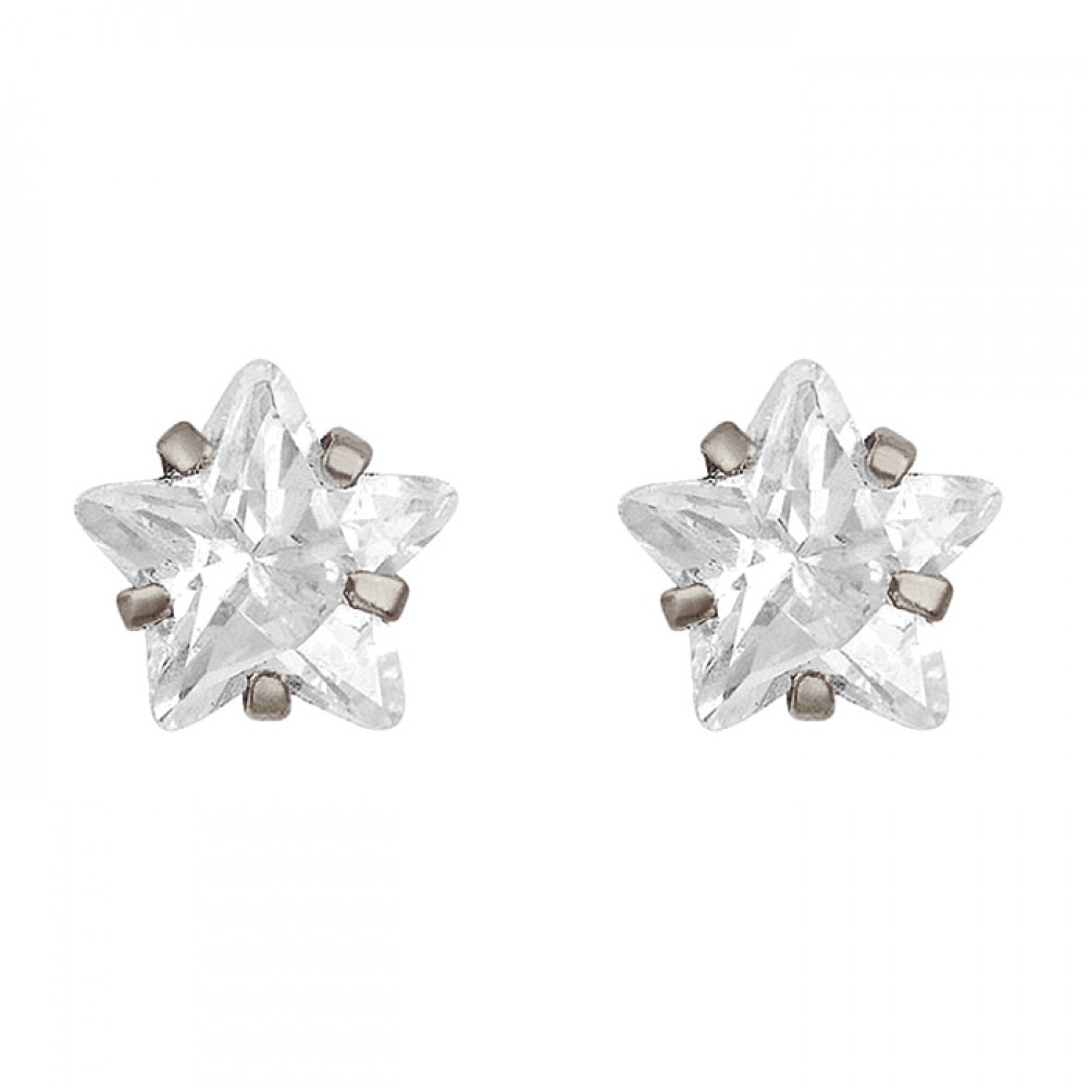 Broquel de Plata con zirconia en forma de estrella de 6mm con montadura de uña.